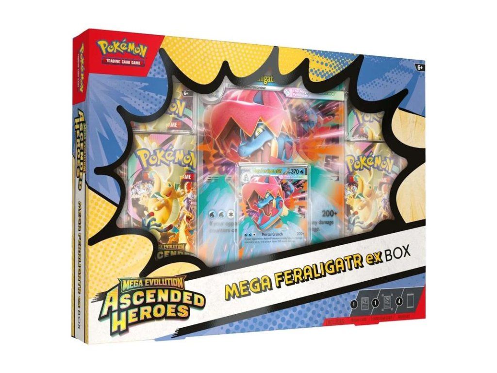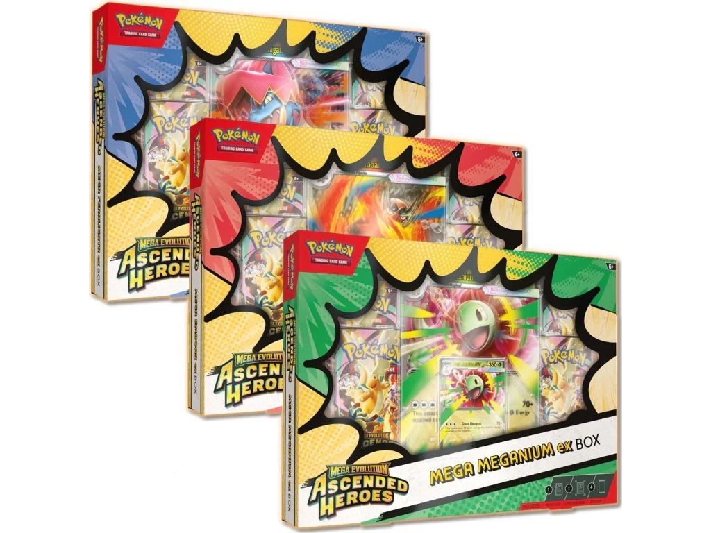 Pokémon TCG: Ascended Heroes EX Box je špeciálne zberateľské balenie, ktoré kombinuje exkluzívne promo karty s booster balíčkami na rozšírenie zbierky.