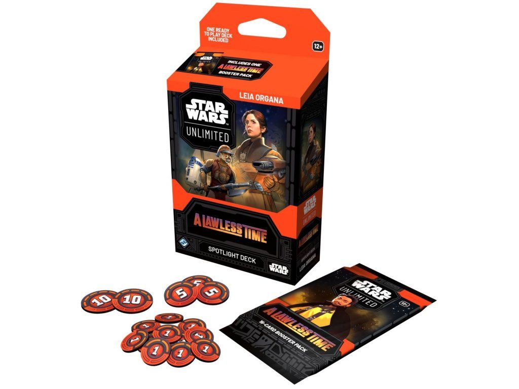 Star Wars Unlimited: A Lawless Time – Spotlight Deck: Leia Organa je predpripravený balíček kariet určený pre okamžité hranie. Deck je postavený okolo legendárnej vodkyne Rebelov Lei Organy a obsahuje vyváženú kombináciu jednotiek, udalostí a podpory pre strategickú hru. Produkt je vhodný pre nových hráčov aj fanúšikov Star Wars, ktorí chcú začať hrať bez nutnosti skladania vlastného balíka.