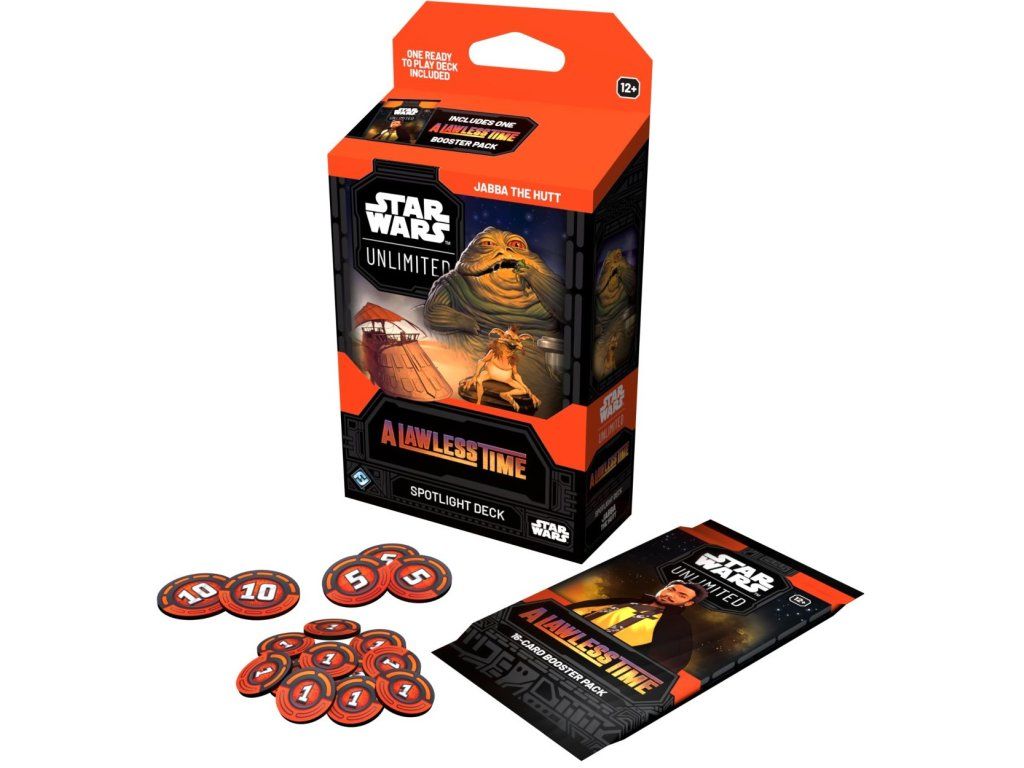 Star Wars Unlimited: A Lawless Time – Spotlight Deck: Jabba Hutt je tematický predpripravený balíček kariet pre kartovú hru Star Wars Unlimited. Deck je postavený okolo obávaného zločineckého bossa Jabbu a jeho podsvetia. Obsahuje kompletný balík kariet pripravený na hranie, vďaka čomu je ideálny pre nových hráčov aj fanúšikov, ktorí chcú okamžite vstúpiť do sveta galaktických súbojov.